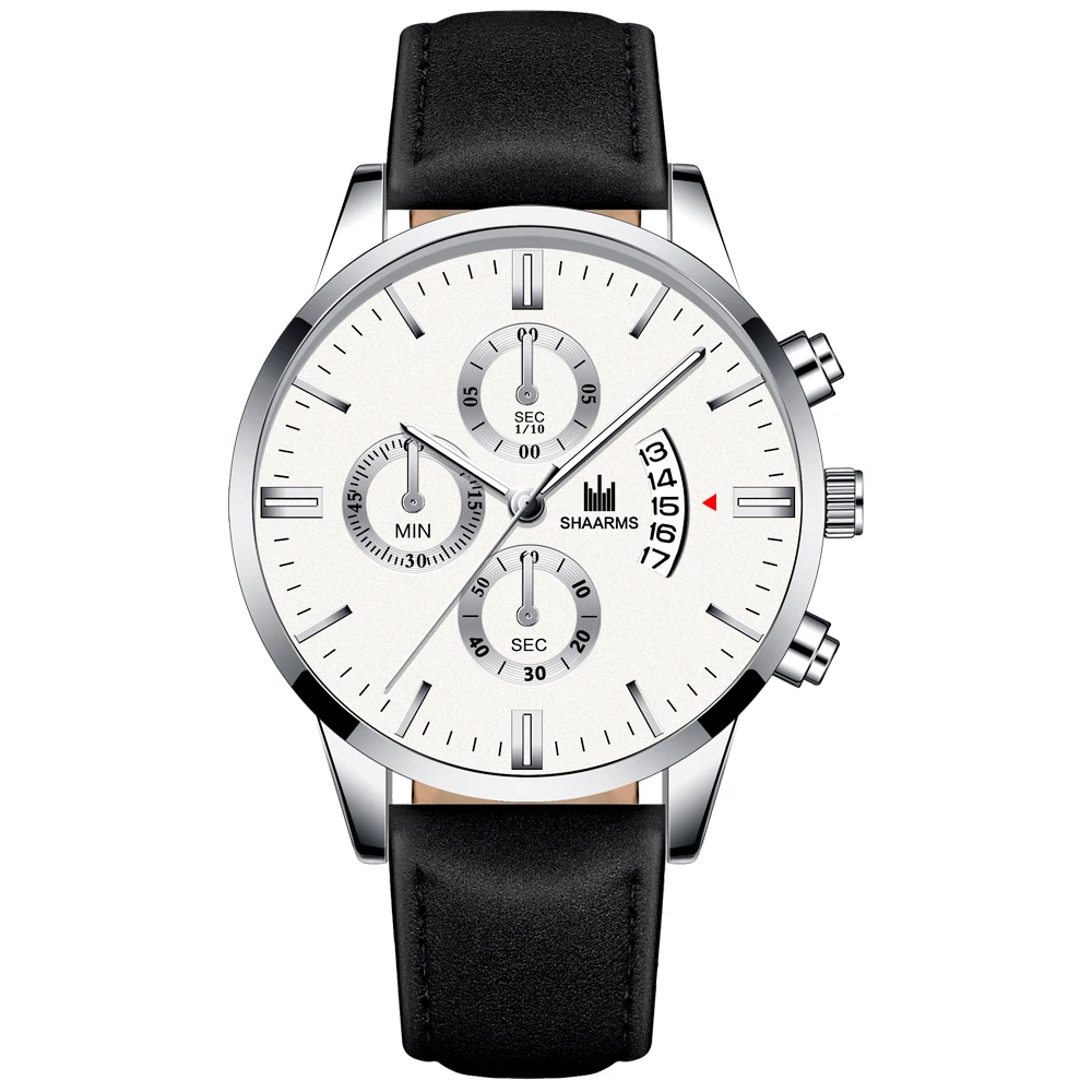 Часы мужские, повседневные, кварцевые, с кожаным ремешком, черные, ...