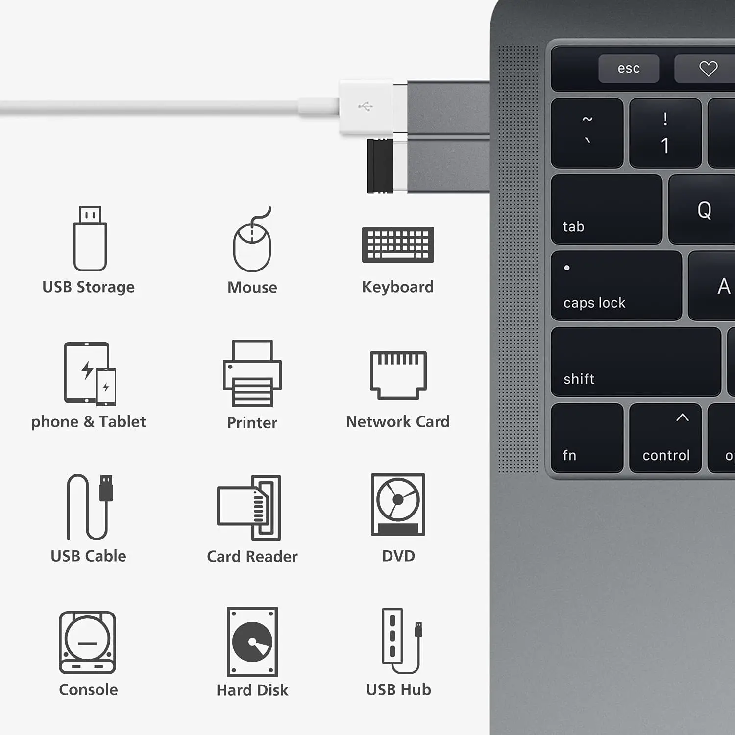 1.USB C мама к USB папа адаптер(Не работает с зарядным устройством MagSafe) обратите внимание на ограничение: это USB-C адаптер для USB-A, предназначенный для зарядки или передачи данных, и он не будет поддерживать передачу видеосигнала. (Последнее обновление: мы обнаружили, что этот адаптер не работает с зарядным устройством MagSafe из-за несовместимости протоколов зарядки. USB-C адаптер питания должен быть использован для вашего нового зарядного устройства MagSafe.)Позволяет подключать USB-C периферийные устройства к устройствам с встроенными портами USB-A.Достаточно маленький, чтобы оставить его в usb-порту без выступающего выхода из ваших устройств.Обеспечивает скорость передачи данных до 480 Мбит/с, а также поддерживает до 3 Ампер выходной мощности.Изготовлен из прочного алюминиевого сплава, чтобы гарантировать, что он не изнашивается с течением времени.