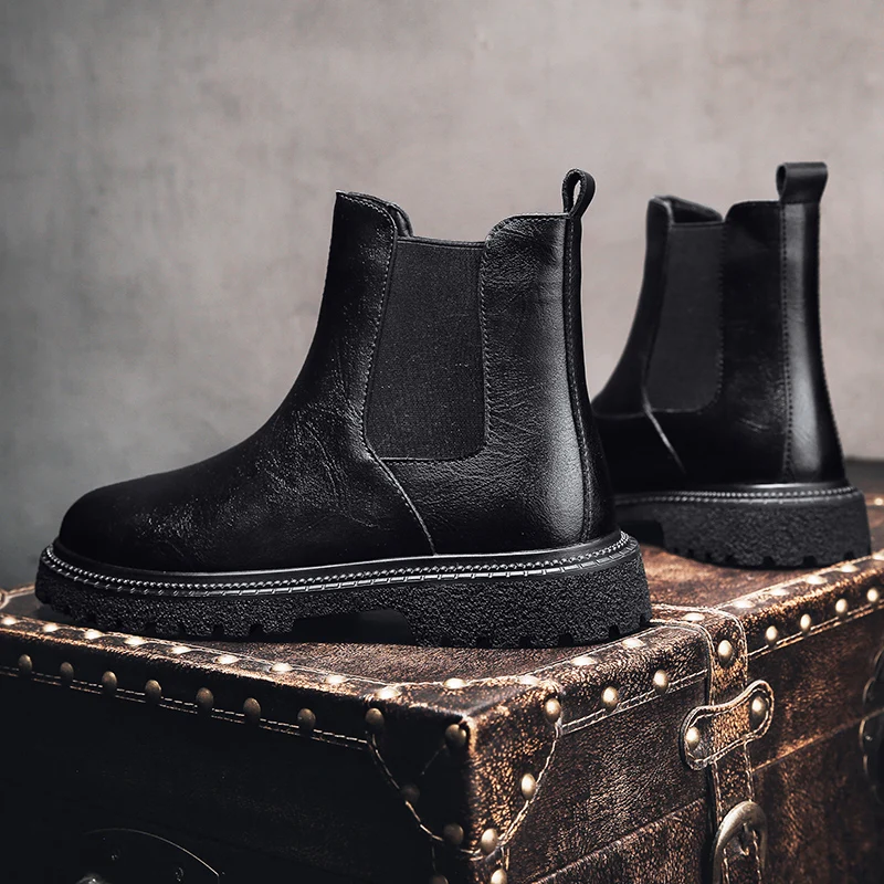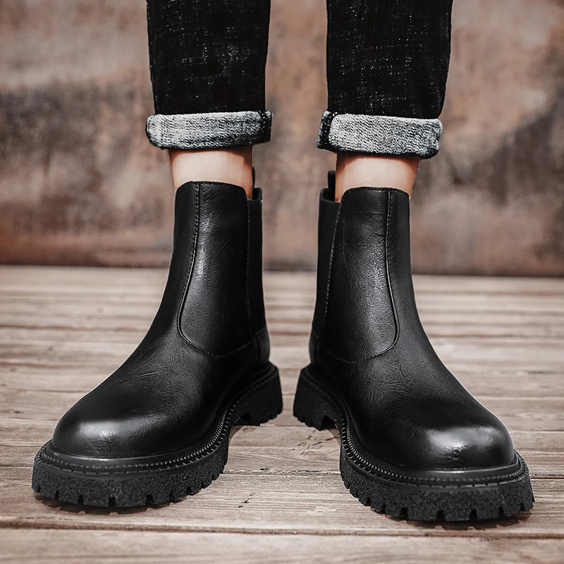 Мужские ботинки челси, черные повседневные кожаные ботильоны, мотоциклетные ботинки, большой размер, зима 2022