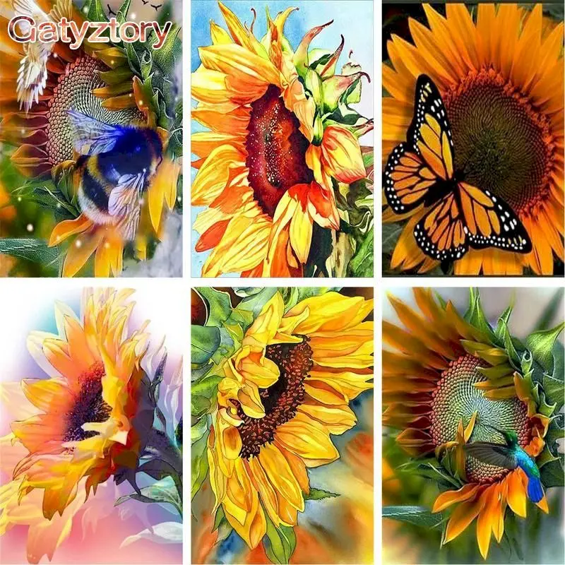 GATYZTORY набор картин по номерам 40x50 рамка уникальный подарок Подсолнечник цветок масляная краска по номерам ручная краска ed домашний декор фото