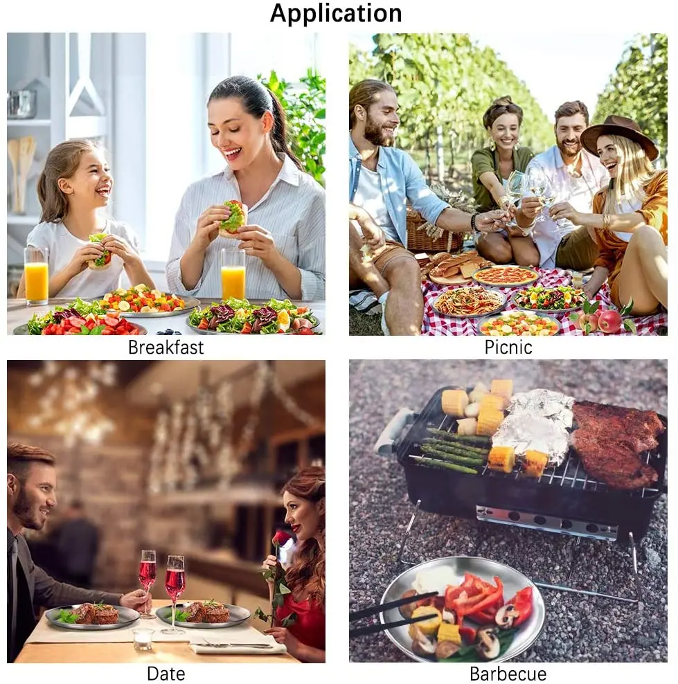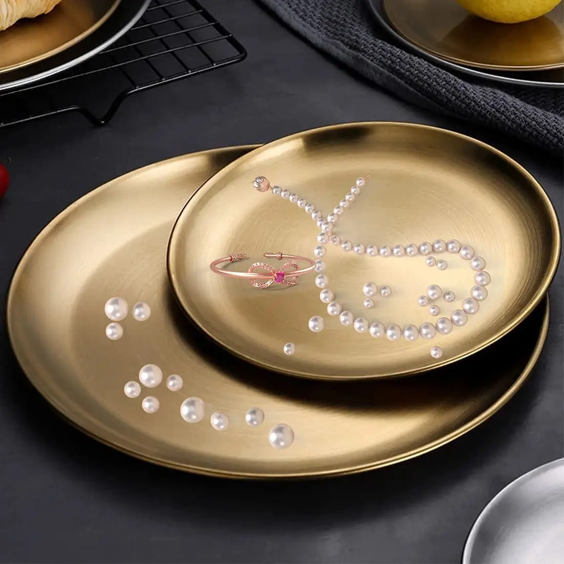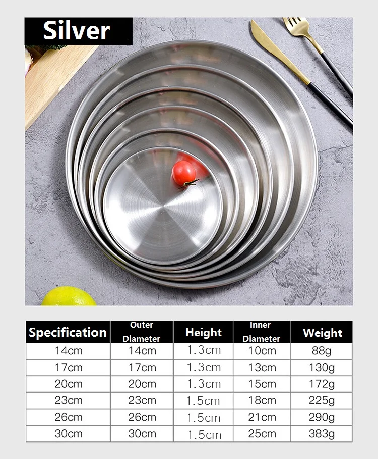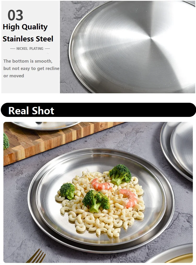 Круглая обеденная посуда, золотые тарелки из нержавеющей стали, металлические тарелки для пикника, искусственная утварь, кухонная посуда, небьющаяся