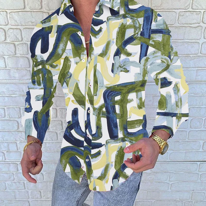 Стильный стиль мужской пол сезоны все сезоны Шаблон Тип печать длина рукава 1 длинный рукав мода и отдых стиль складной воротник Руководство для стирки машинная стирка материал 1 полиэфирное волокно платье для работы, каждый день, на каждый день