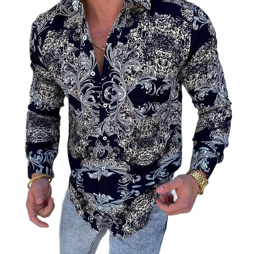 Рубашка мужская с длинным рукавом, модная повседневная с цветочным принтом, осенняя Классическая на пуговицах, с отложным воротником, Top2021
