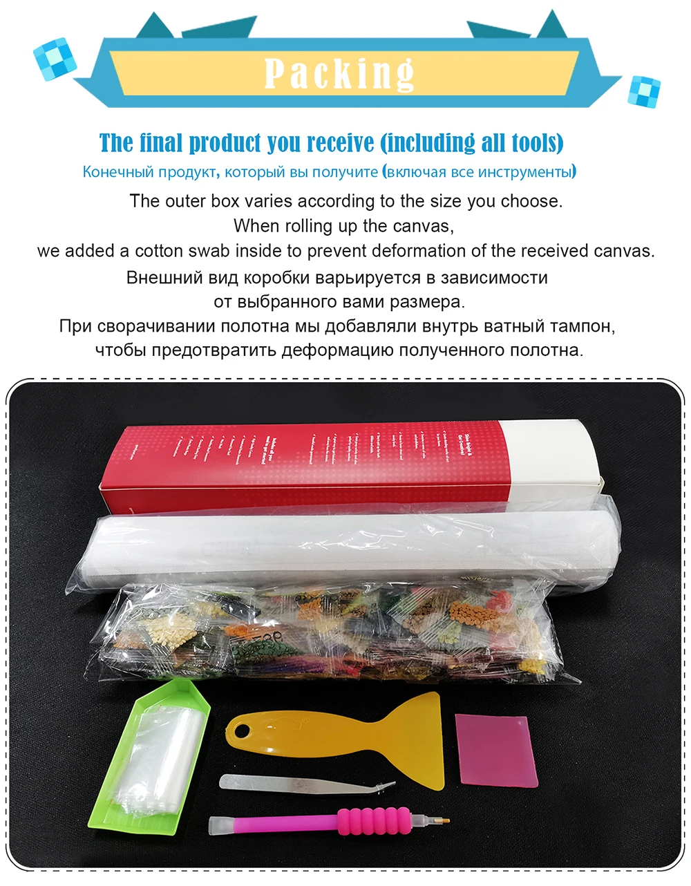 Мы будем усердно работать, чтобы сделать лучшую алмазную картину! Наши алмазные картины-это полуфабрикаты, не включая фоторамки. Мы предоставим вам все инструменты для вставки алмазных картин. Вы должны заполнить его самостоятельно.В комплект входит:-Ткань напечатана с дизайнерскими рисунками-Цветные бриллианты-Точечная ручка-Сверлильный диск, воск, пинцетДополнительные пластиковые пакеты для хранения и сортировки