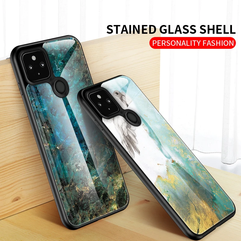 2022 мраморный чехол из закаленного стекла для Google Pixel 4A Женская тонкая силиконовая рамка задняя крышка из твердого стекла для Pixel 4A Pixel 5