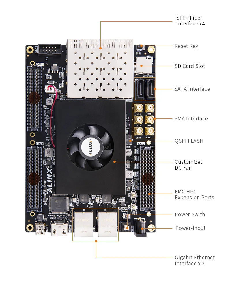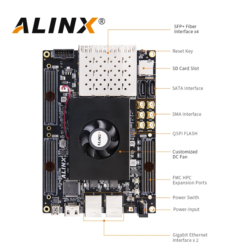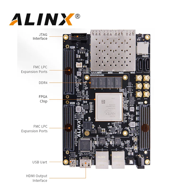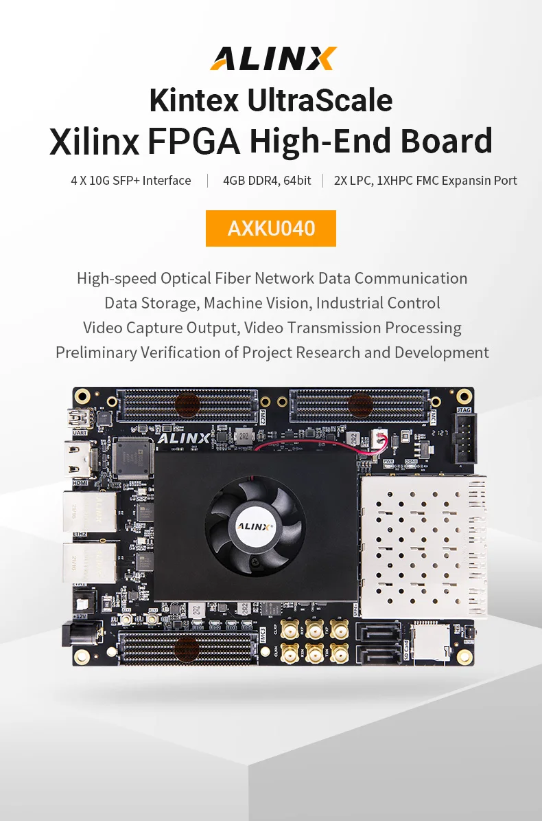 ALINX AXKU040: Xilinx Kintex UltraScale XCKU040 FPGA плата видеообработки 4 Гб DDR4 4x10G SFP передача FMC HPC