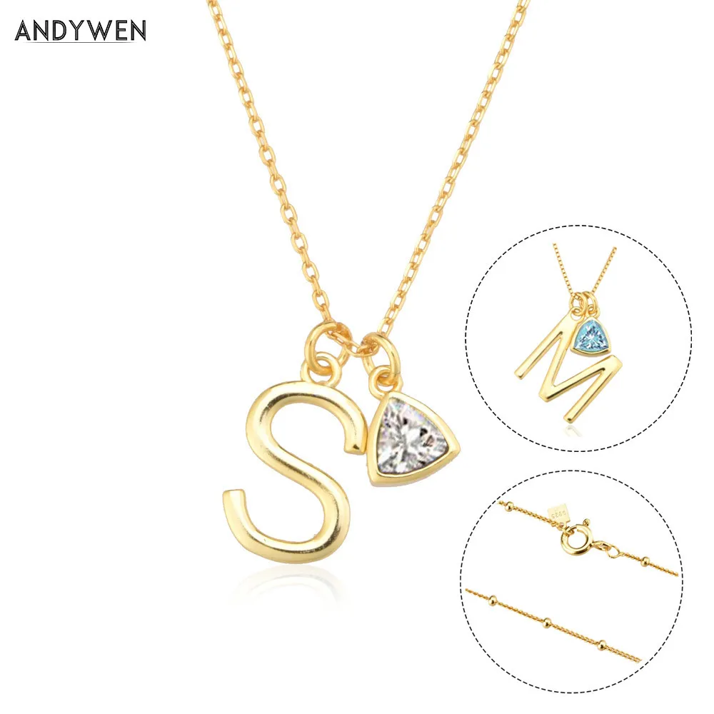 ANDYWEN 925 пробы Серебряный Золотой 26 букв Обычная Буква A M S C...
