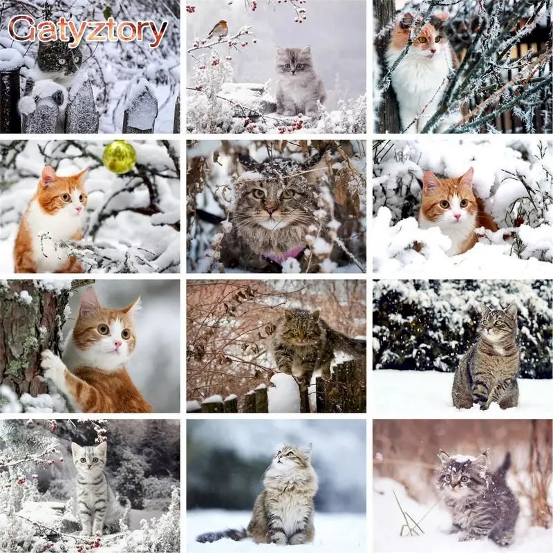 GATYZTORY Набор для рисования по номерам для взрослых и детей, снежное поле, котенок, животные, наборы для рисования ручной работы, DIY подарок, украшение для дома