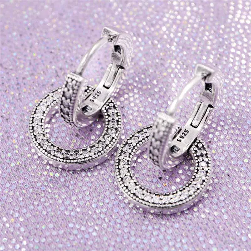 Натуральная 925 стерлингового серебра CZ сверкающие Двойные серьги-...