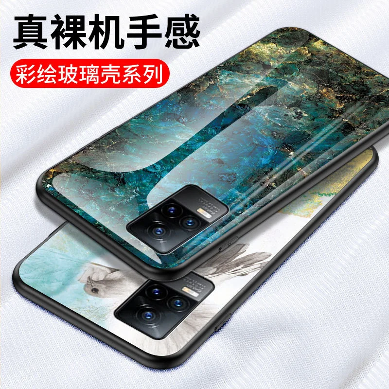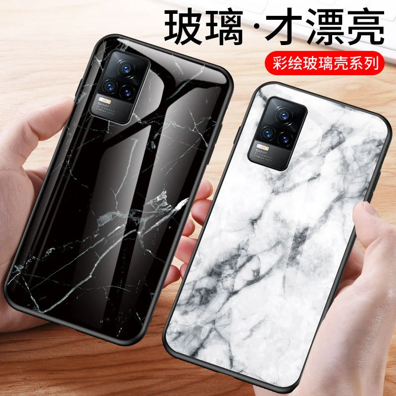 Чехол для телефона vivo v21e с мраморным рисунком x60pro, чехол из закаленного стекла, защитный чехол iqoo Z3 с защитой от падения