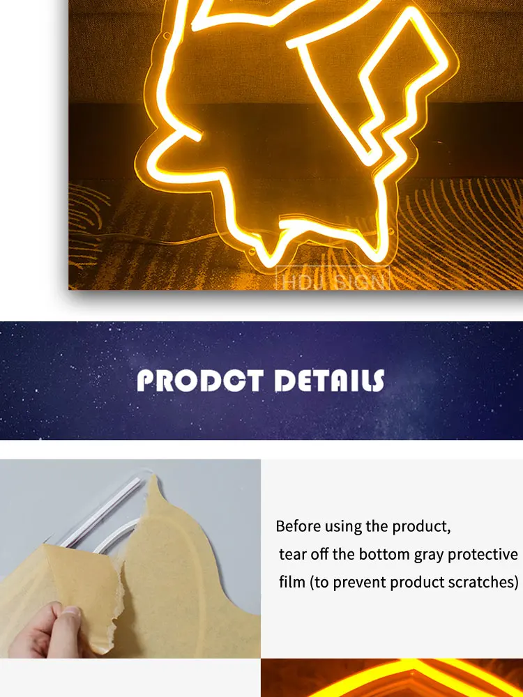 Неоновая вывеска Pikachu, персонализированный светодиодный светильник в стиле аниме, для спальни, дома и магазина, креативный подарок на день рождения