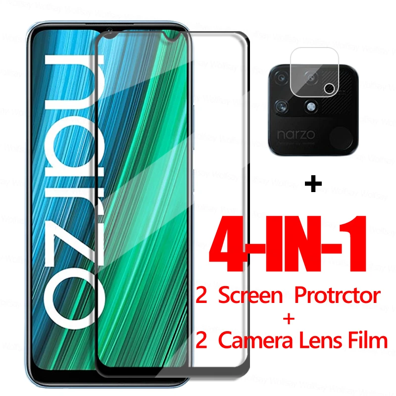 4 в 1 для Realme Narzo 50A Защитное стекло для экрана Realme Narzo 50A Закаленное стекло Защитная пленка для телефона Realme Narzo 50A 50i 30A