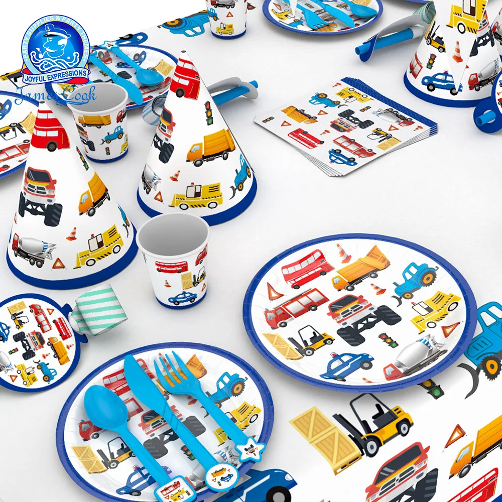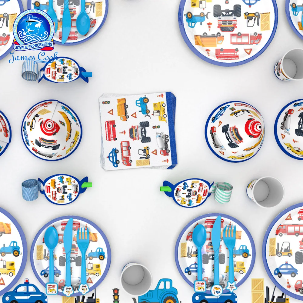Тематические одноразовые столовые приборы с инженерным автомобилем,...