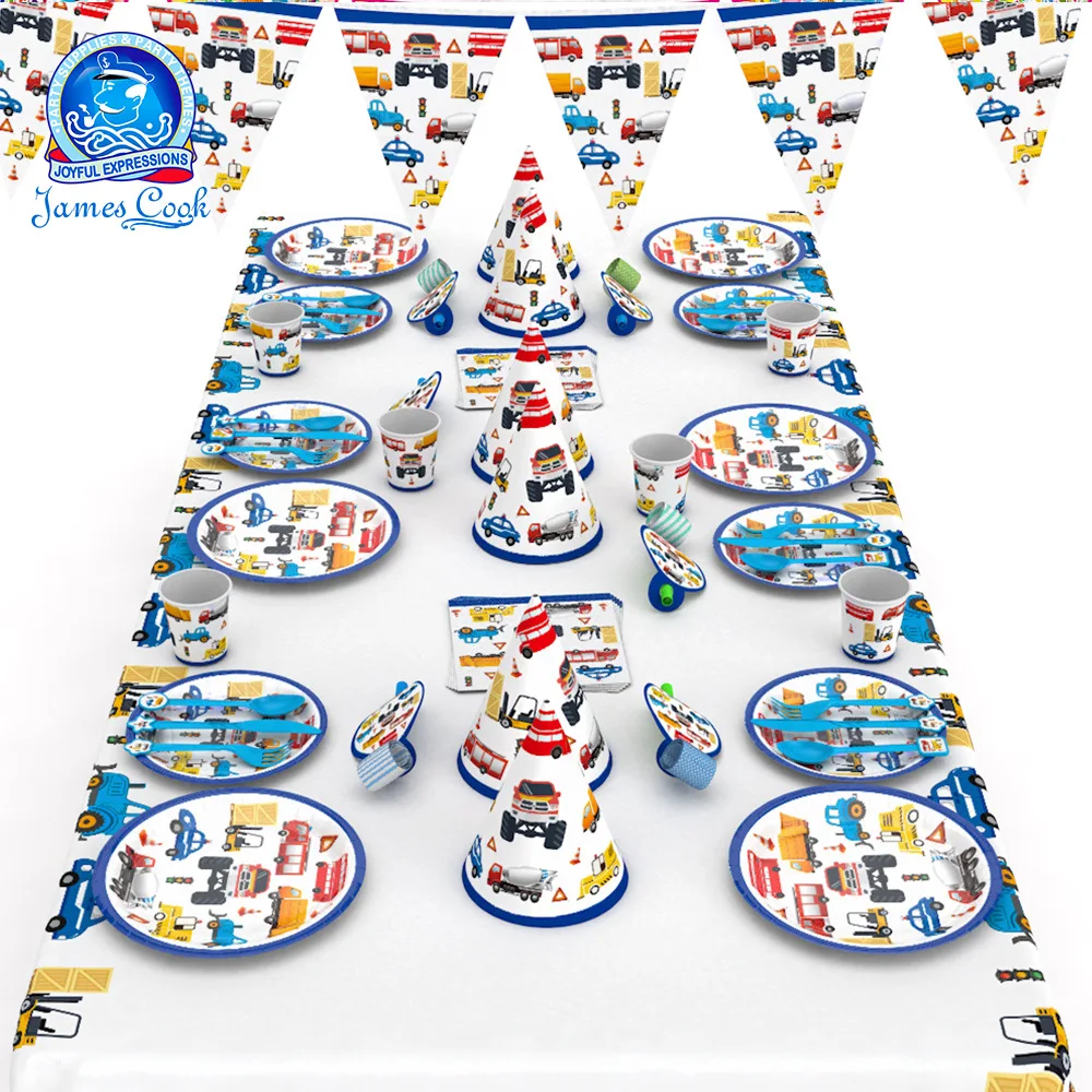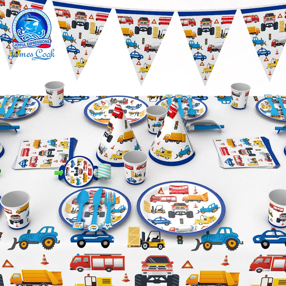 Автомобильная посуда, инженерная Автомобильная скатерть, игрушечный грузовик, обеденная тарелка для пожарной тематики, товары для вечерние для мальчиков и детей
