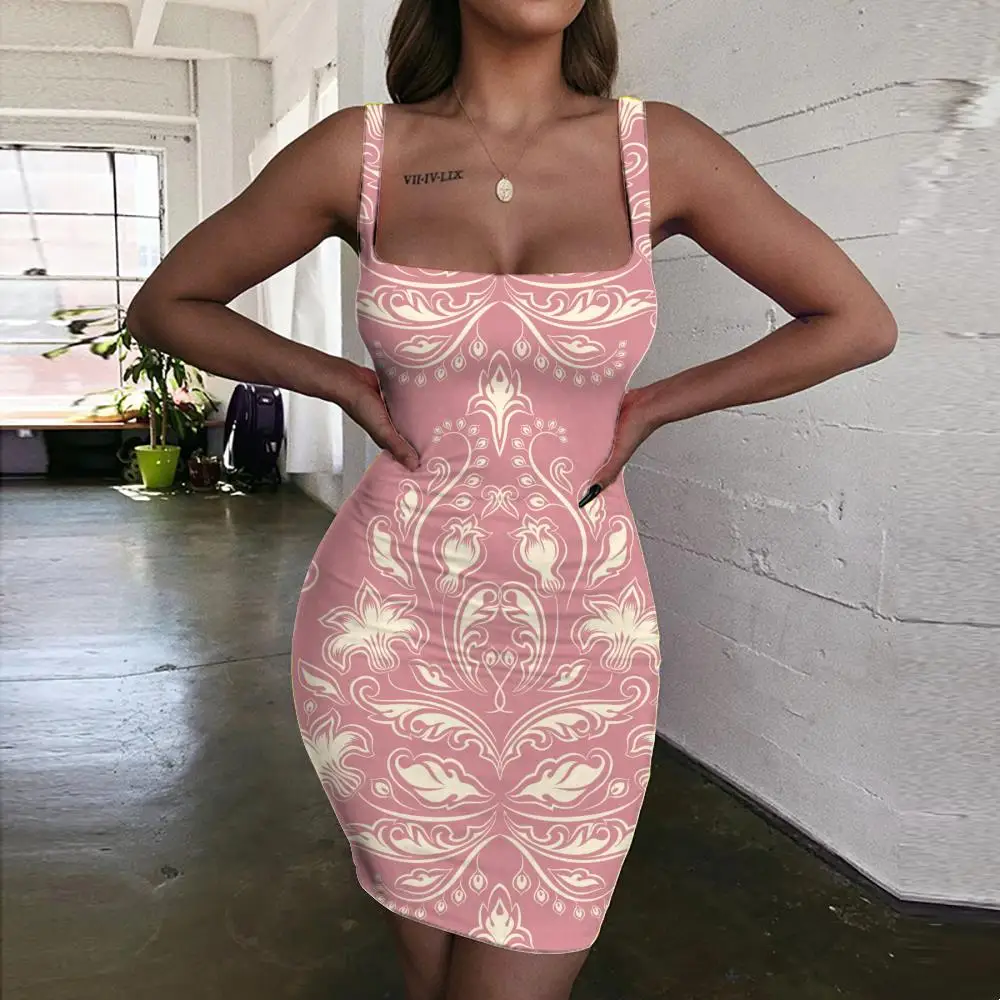 Женское короткое вечернее платье KYKU, розовое платье с цветочным принтом, лямкой на шее, без рукавов, с 3D-принтом, лето