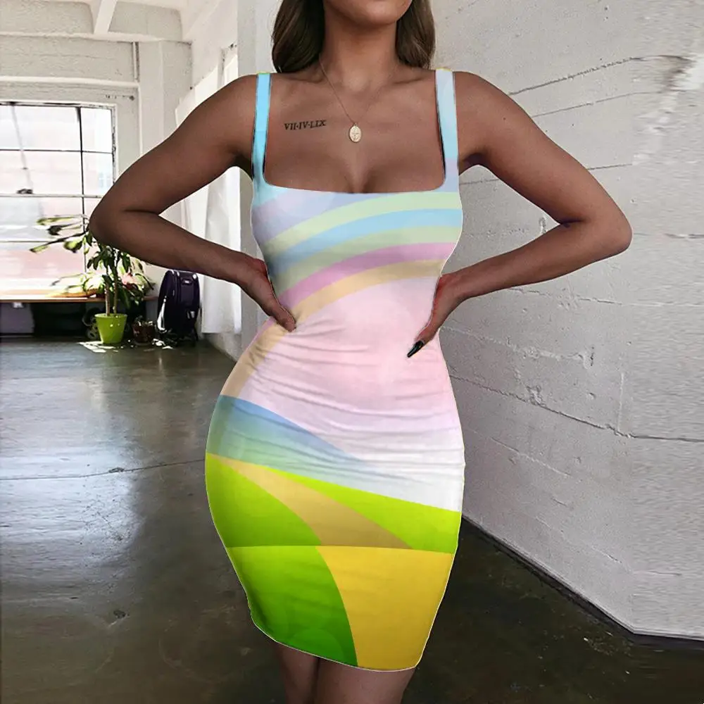 Женское пляжное платье с лямкой на шее KYKU, разноцветное Радужное ...
