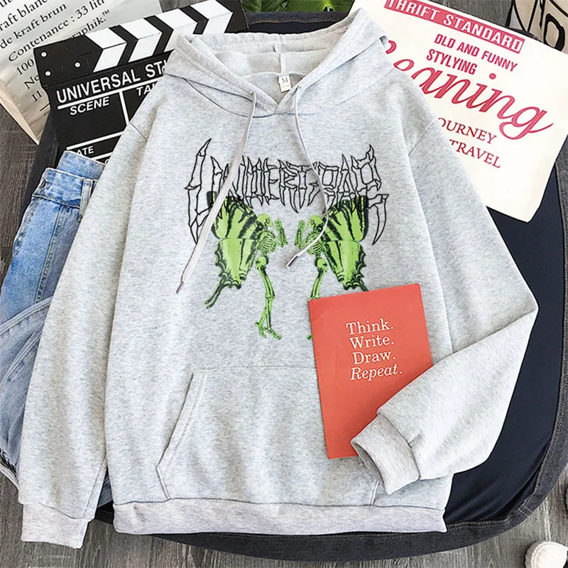 Женская толстовка оверсайз с принтом в виде бабочек и скелета