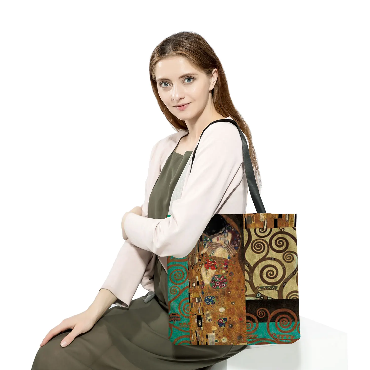 Повседневные сумки-тоуты с золотой масляной живописью, экологически чистые многоразовые уличные пляжные мешки для покупок, Повседневная Дамская сумочка на плечо, под заказ