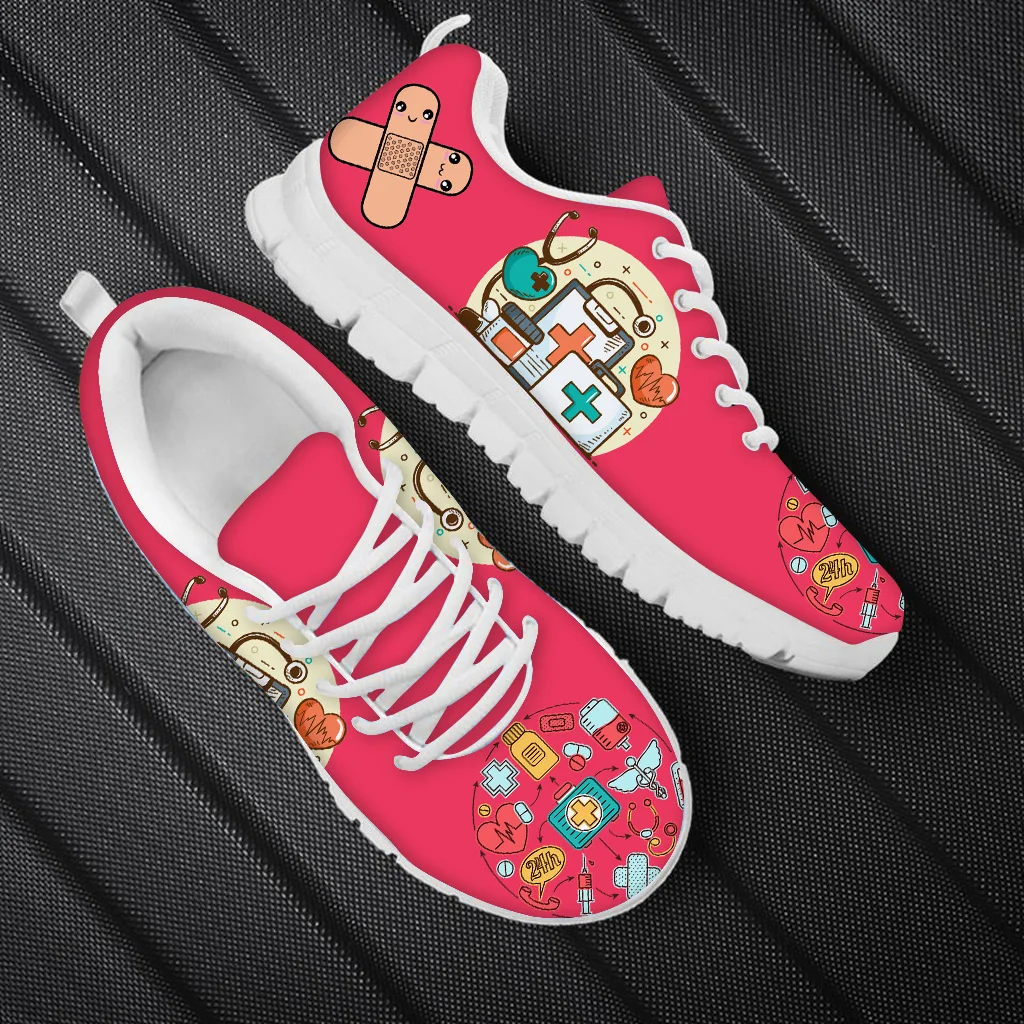 Doginthehole милая розовая медицинская обувь на плоской подошве женская модная обувь для медсестры с рисунком инструменты по уходу повседневные уличные кроссовки со шнуровкой
