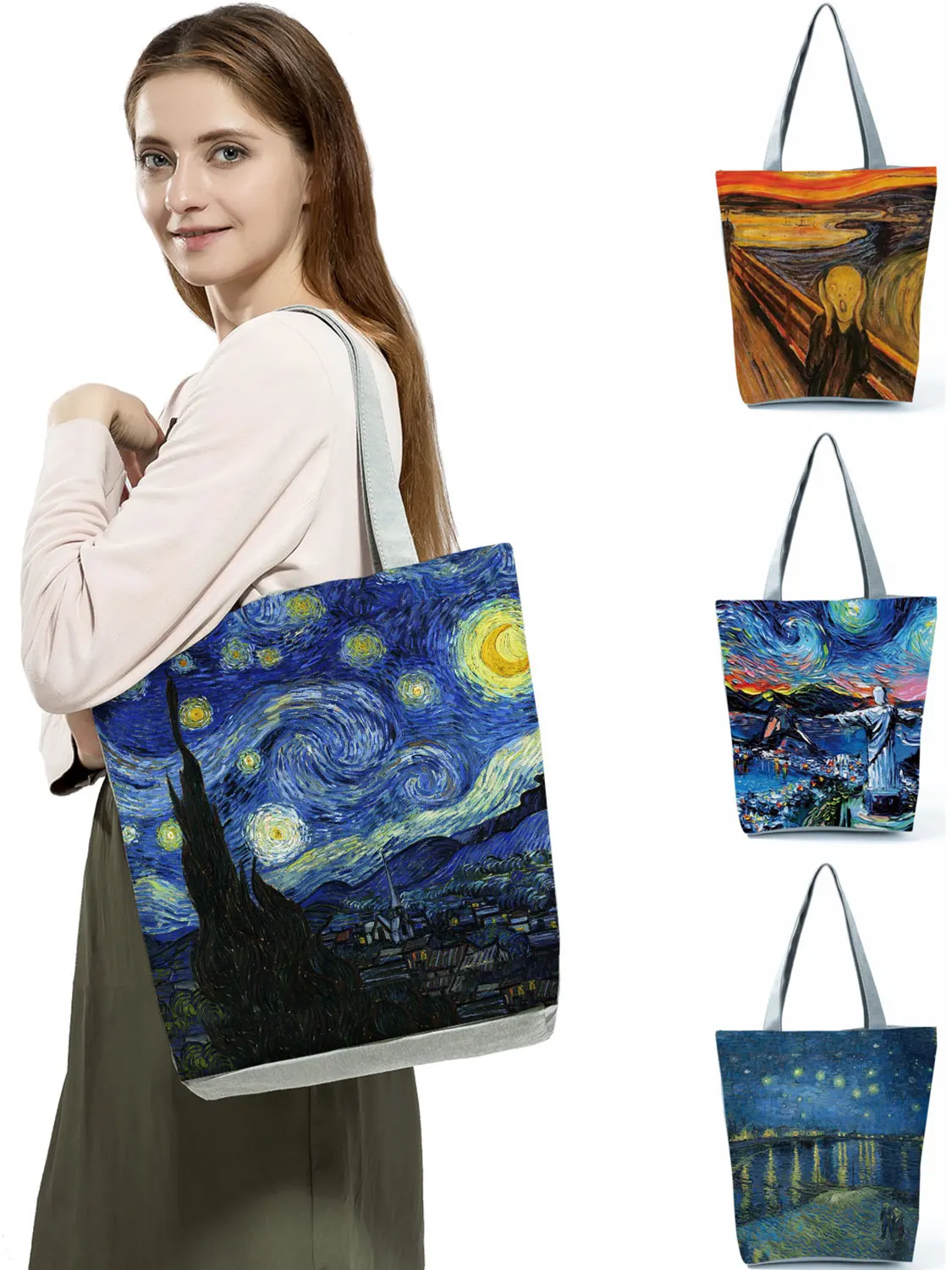 Сумки с принтом маслом, женская сумка через плечо, вместительная сумка для покупок, дорожная пляжная сумка, синяя модная сумка-тоут со звездным небом