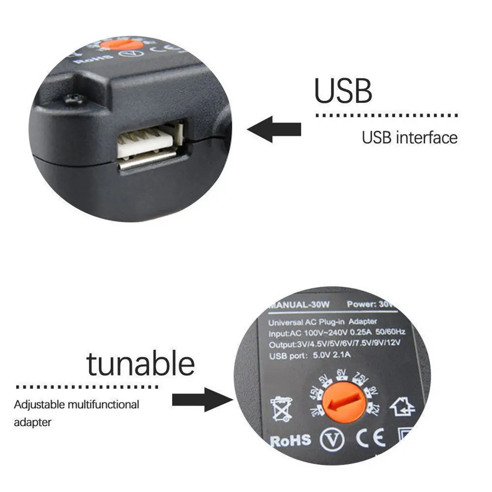 Адаптер питания переменногопостоянного тока, 3-12 В, 30 Вт, 2,1 А, универсальный адаптер для зарядного устройства с 6 вилками, Регулируемый адаптер питания с регулировкой напряжения