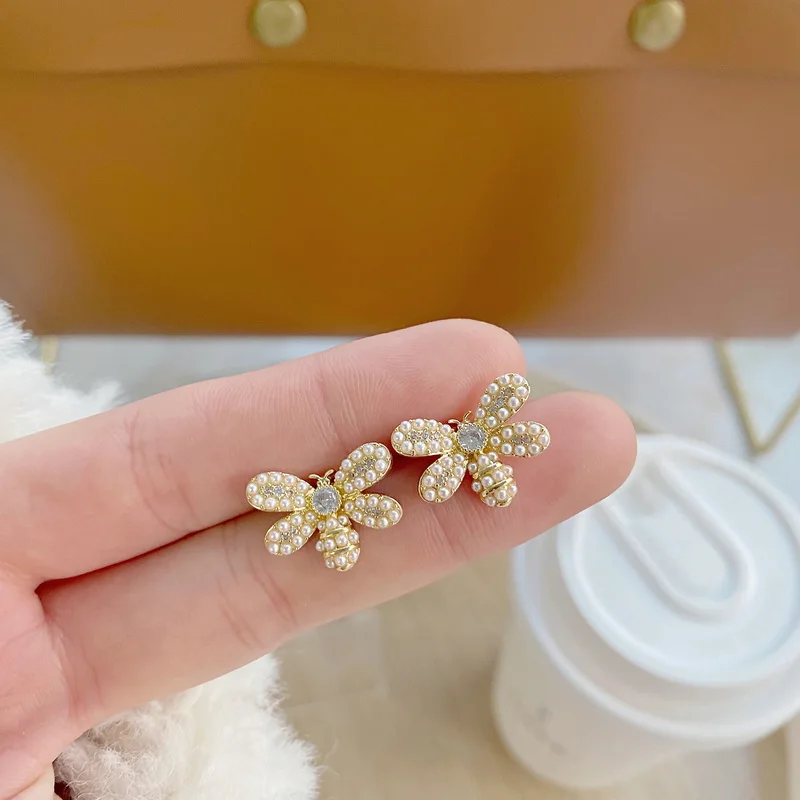 Серьги в Корейском стиле с кристаллами, Маргаритка, животные, Искусственные серьги для женщин, маленькие милые серьги в виде пчелы, темпераментные Свадебные украшения для вечеринок