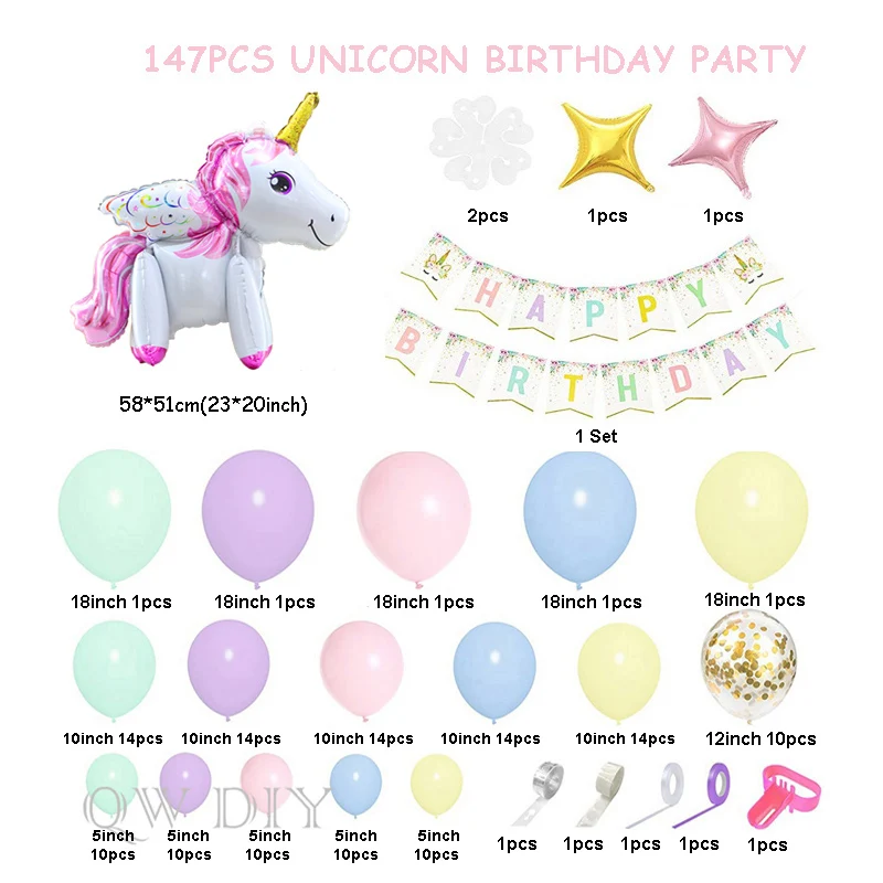 5 шт. 18-дюймовые пастельных воздушных шаров (цвета: голубой, розовый, фиолетовый,Желтый, зеленый)10 шт 12 дюймов золотой конфетти воздушные шары70 шт 10-дюймовая шпилька для воздушных шаров (14 синий, 14, розовые, 14Фиолетовый, 14 Желтый, 14 зеленый)2 шт 10 дюймовые алюминиевые Звездные шары (1 золото, 1Розовый)50 шт в наборе, 5 дюймов воздушных шаров (10 синий, 10 розового цвета, 10Фиолетовый, 10 Желтый, 10 зеленый)1 шт 20*23 дюймов Единорог алюминиевый шар