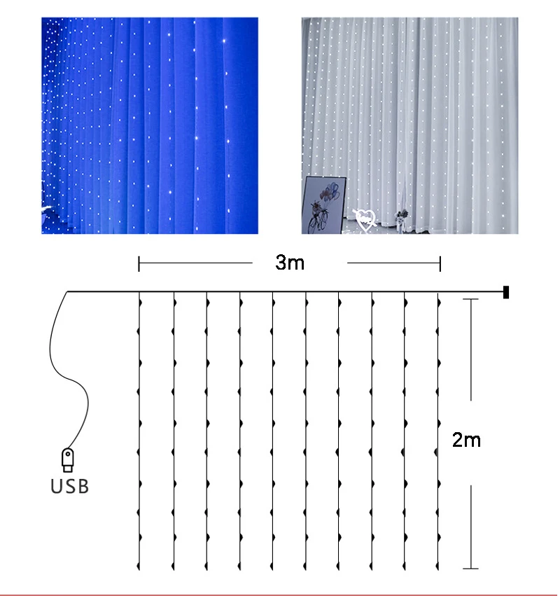 Светодиодный светильник для штор (3 м * 2 м, 200 светодиодный светильник)