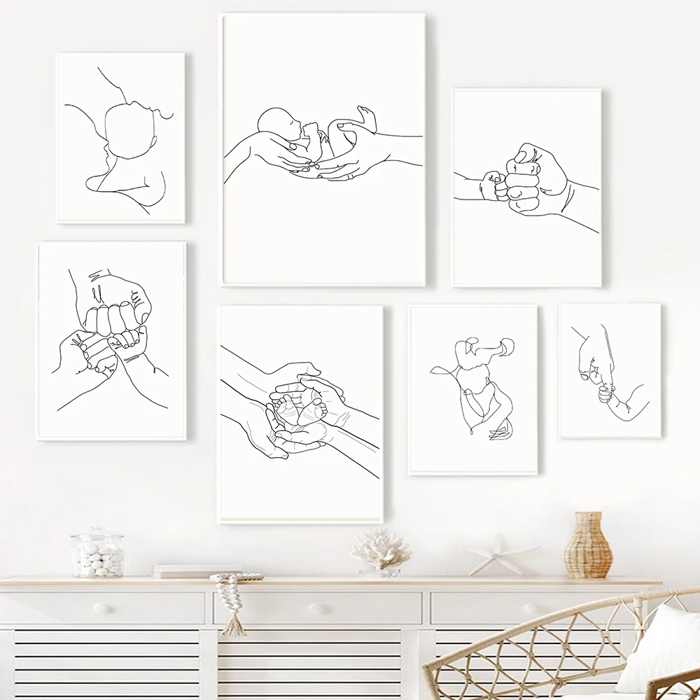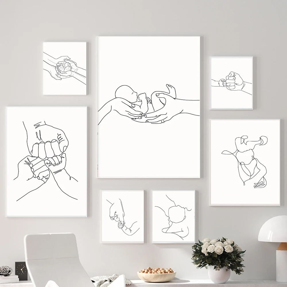 Настенное искусство счастливая семья Холст Живопись Искусство ручной росписи линии любовь ребенок скандинавские постеры для детей Детская комната Декор настенная роспись