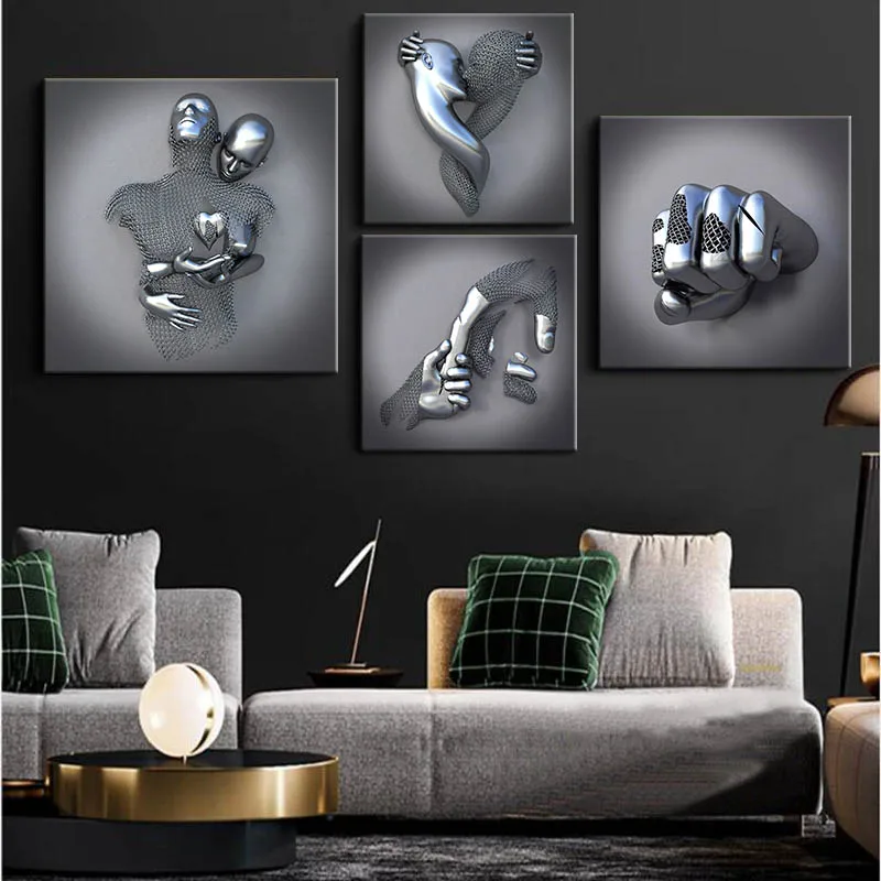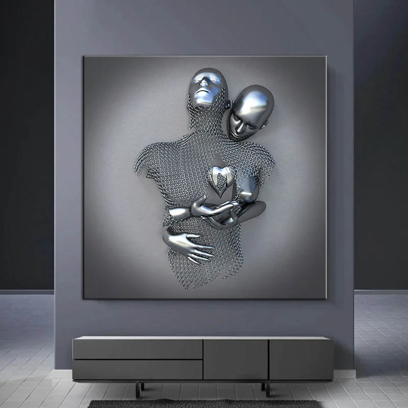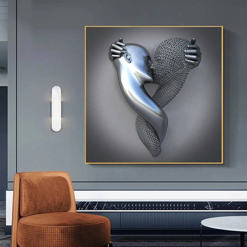 Романтическая возлюбленная металлическая статуя Искусство Холст Картина абстрактная культура плакат и искусство для гостиной домашний декор