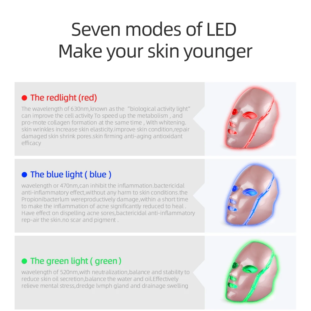 Цвет светодиодный светильник: 7 цветов маска для ухода за кожей