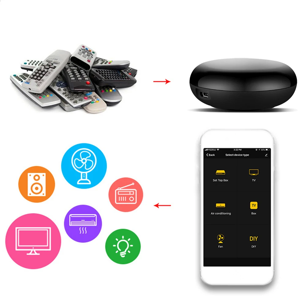 С помощью этого универсального инфракрасного пульта дистанционного управления вы можете использовать свой смартфон для управления бытовой техникой, такой как ТВ-приставки (STB), ТВ-приставки, телевизоры, кондиционеры, вентиляторы, DVD-диски, И т. Д. Совместим с большинством брендов, пожалуйста, ознакомьтесь со списком поддерживаемых брендов в приложении для получения подробной информации. Кроме того, в нем также есть функция обучения, которая позволяет скопировать ключевые функции оригинального пульта дистанционного управления в приложение.
