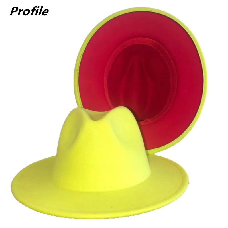 Флуоресцентная зеленая новая шляпа Федора шляпа с широкими полями ш...