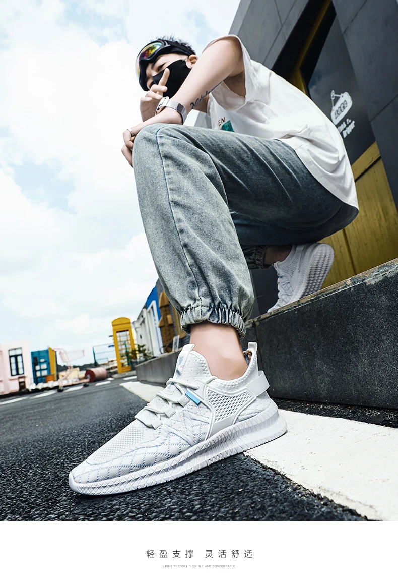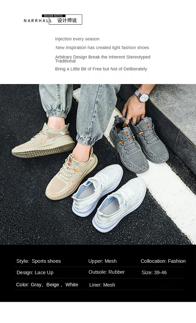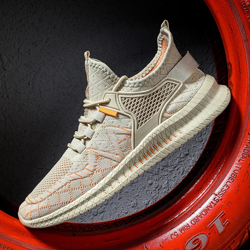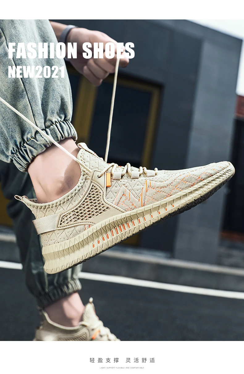 Кроссовки YRZL мужские ультралегкие, повседневная сетчатая модная дышащая спортивная обувь, на шнуровке, Нескользящие, для улицы, бежевые