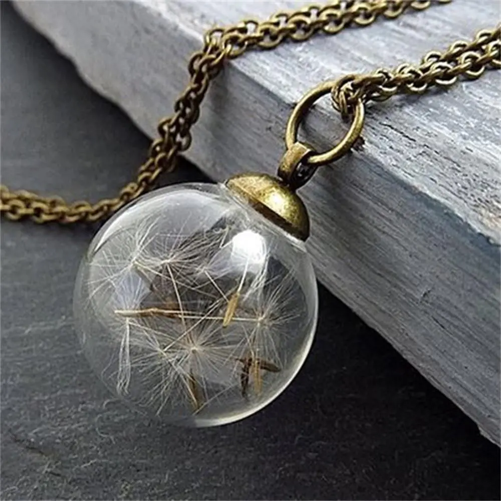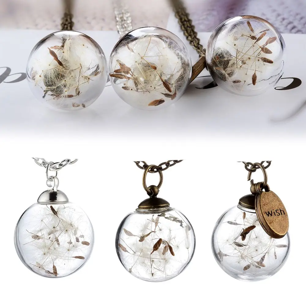 Очаровательная Новинка, модный подарок для нее, Одуванчик ручной работы, кулон в виде прозрачного хрустального шара, Одуванчик, ожерелье для желаний