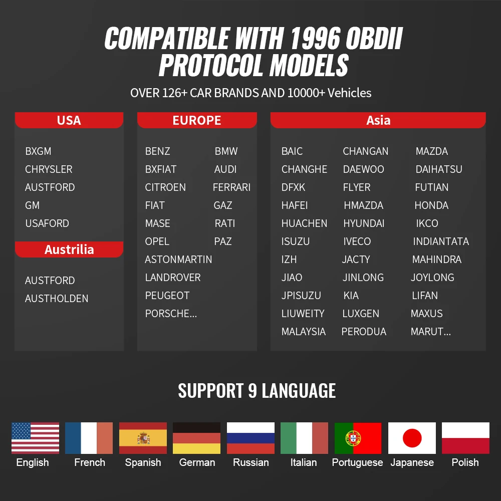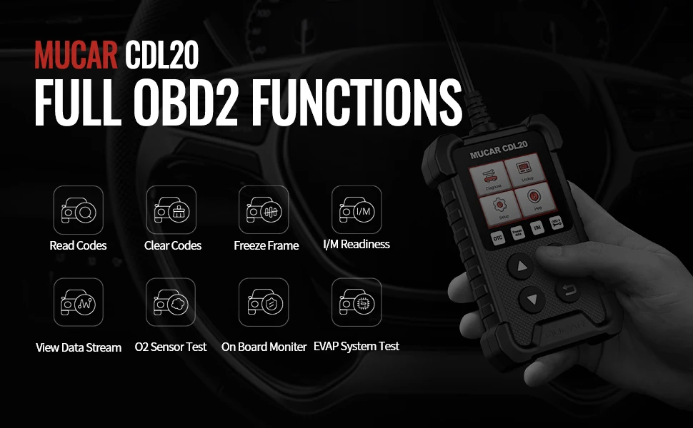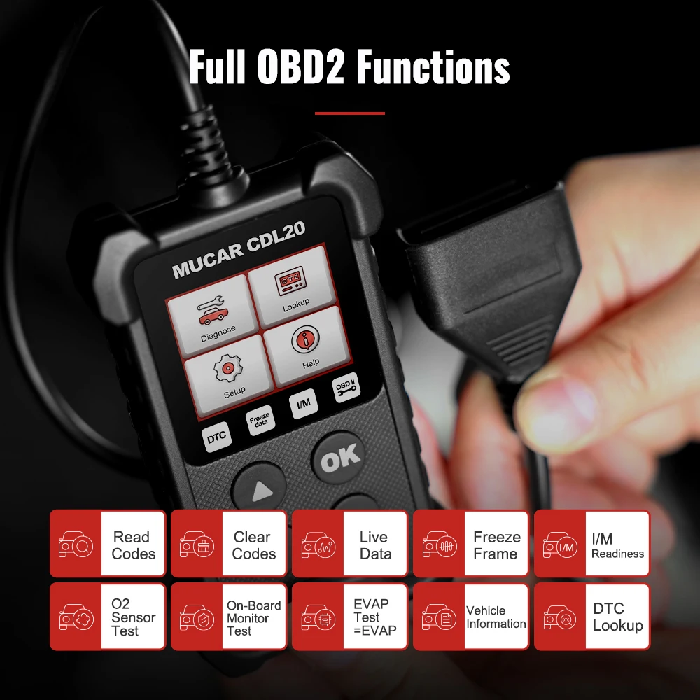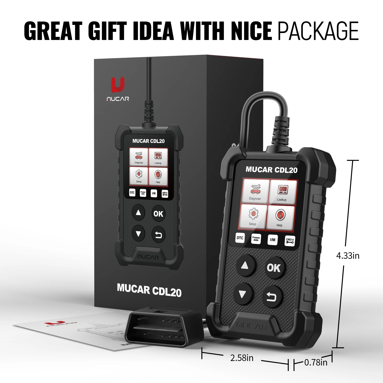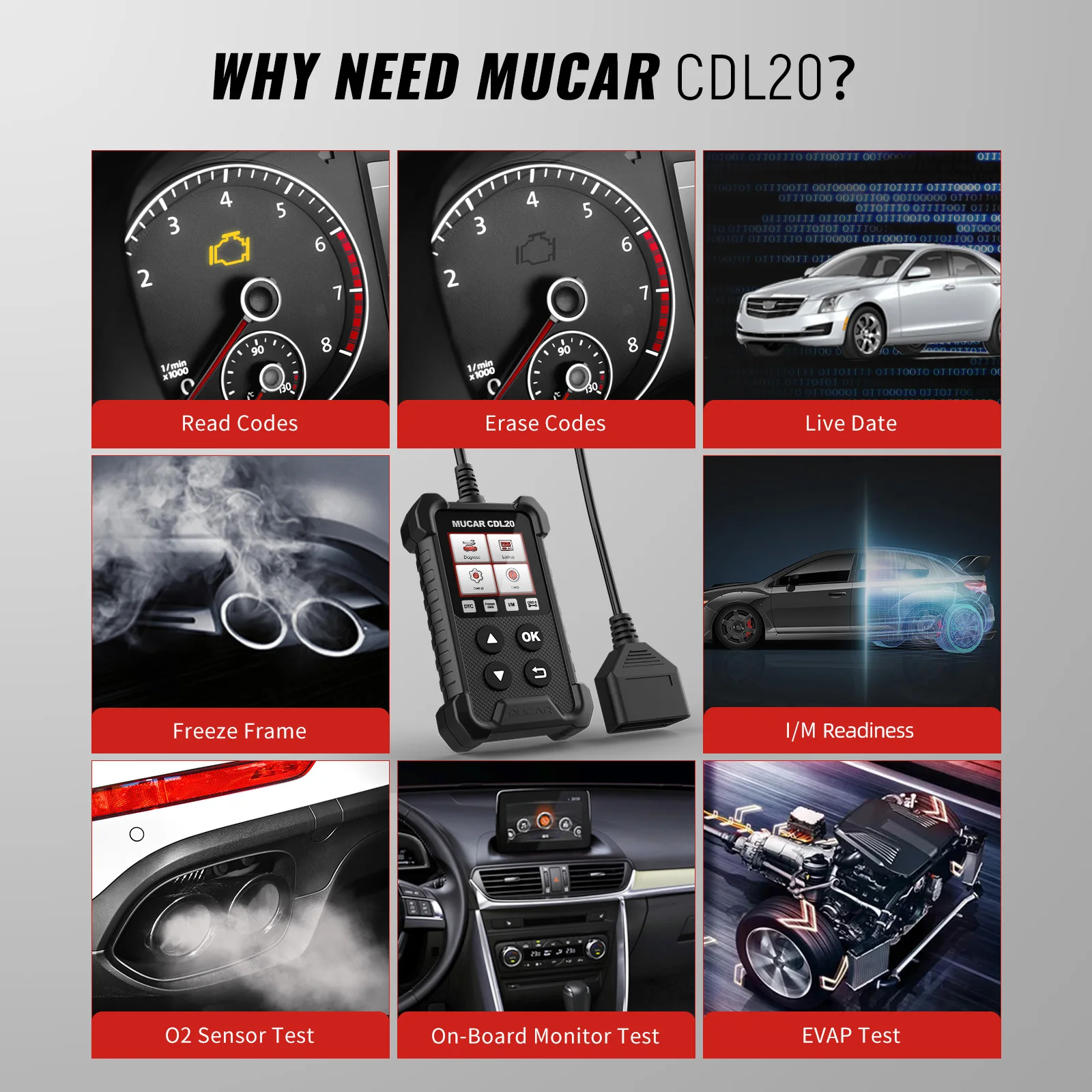 Диагностический сканер MUCAR CDL20 OBD2, устройство для чтения кодов автомобиля, для проверки двигателя, тестер на смог, анализатор выбросов для датчика O2EVAP