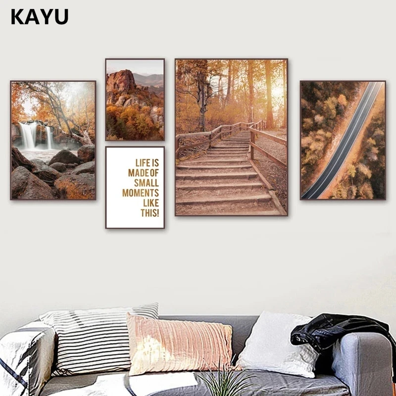 Настенная картина с изображением водопада и осенних листьев, сканди...