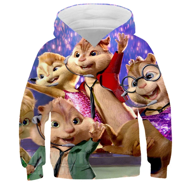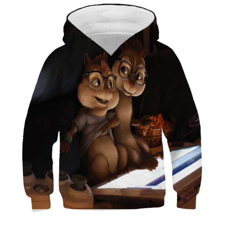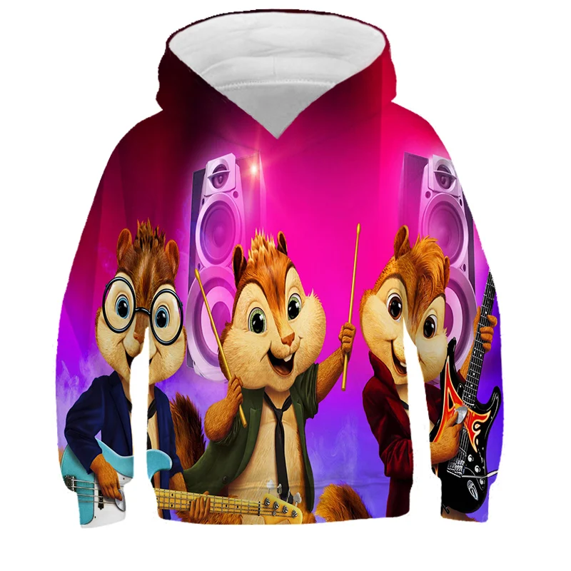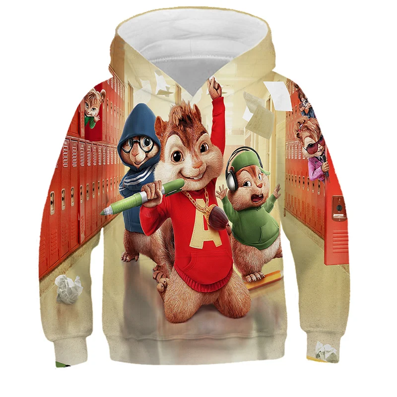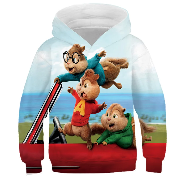 Детская толстовка с капюшоном Alvin и чипмункс, одежда для мальчиков и девочек, детская Красная толстовка с капюшоном и 3D-принтом, пуловер с длинным рукавом, топы высокого качества