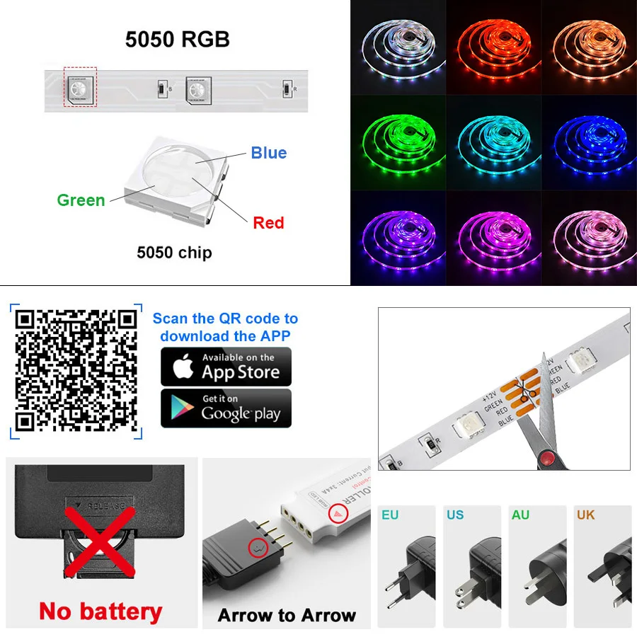 Светодиодная лента 5050 RGB с поддержкой Bluetooth, 5-30 м