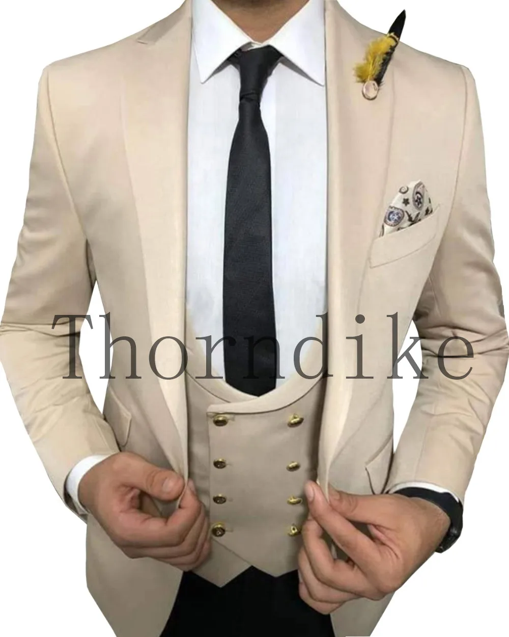 Мужской костюм-смокинг Thorndike цвета хаки, двубортный жилет, модные свадебные костюмы для мужчин, стандартные индивидуальные размеры, облегающие костюмы из 3 предметов