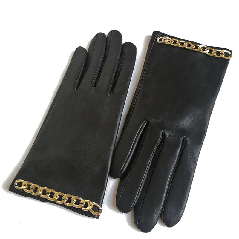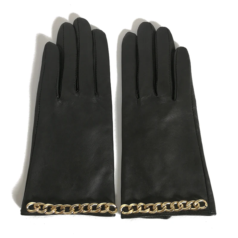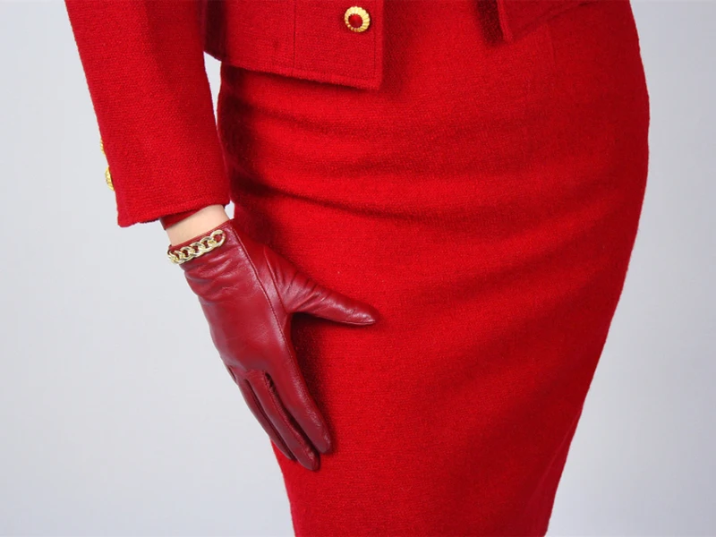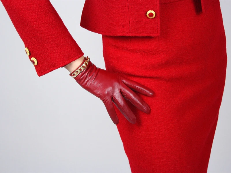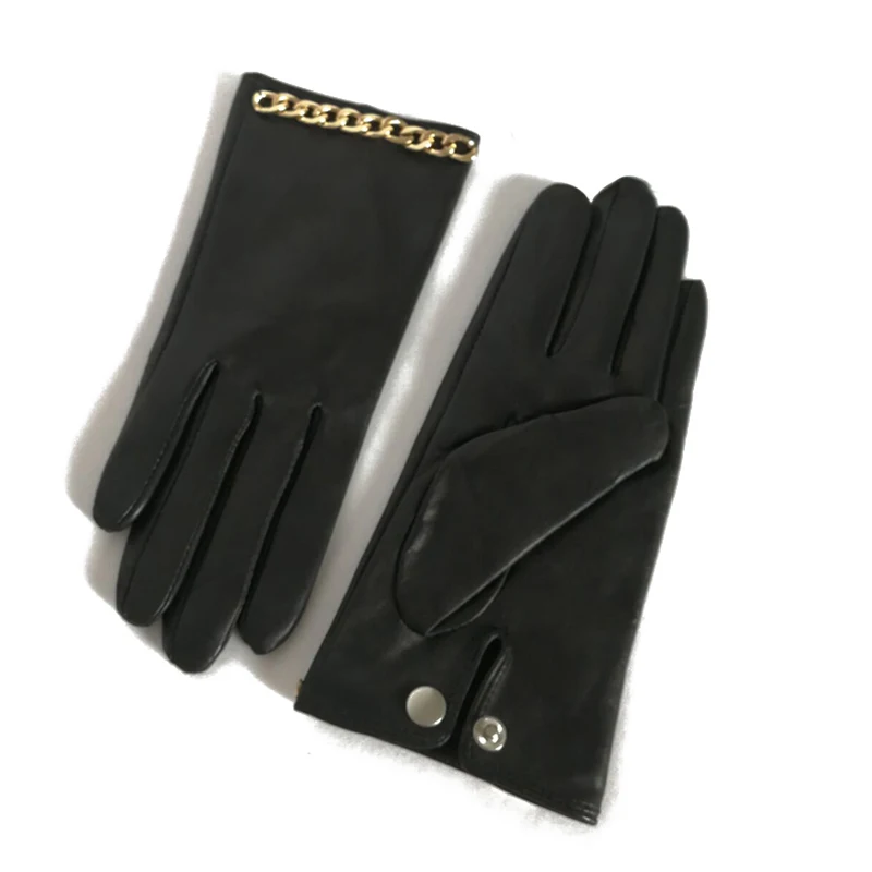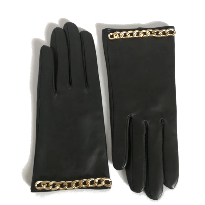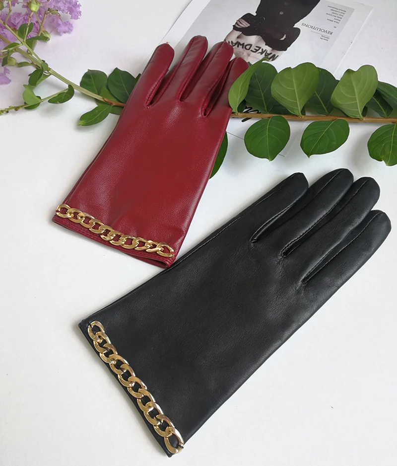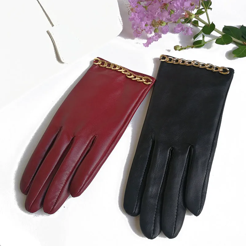 Элегантные осенне-зимние тонкие перчатки для вождения с сенсорным экраном, женские перчатки с бархатной цепочкой, короткие кожаные перчатки из овчины S2642