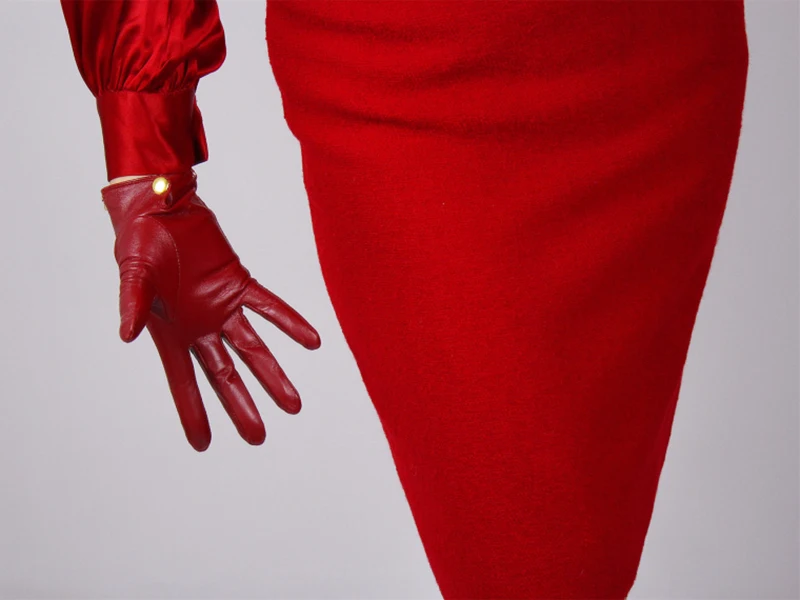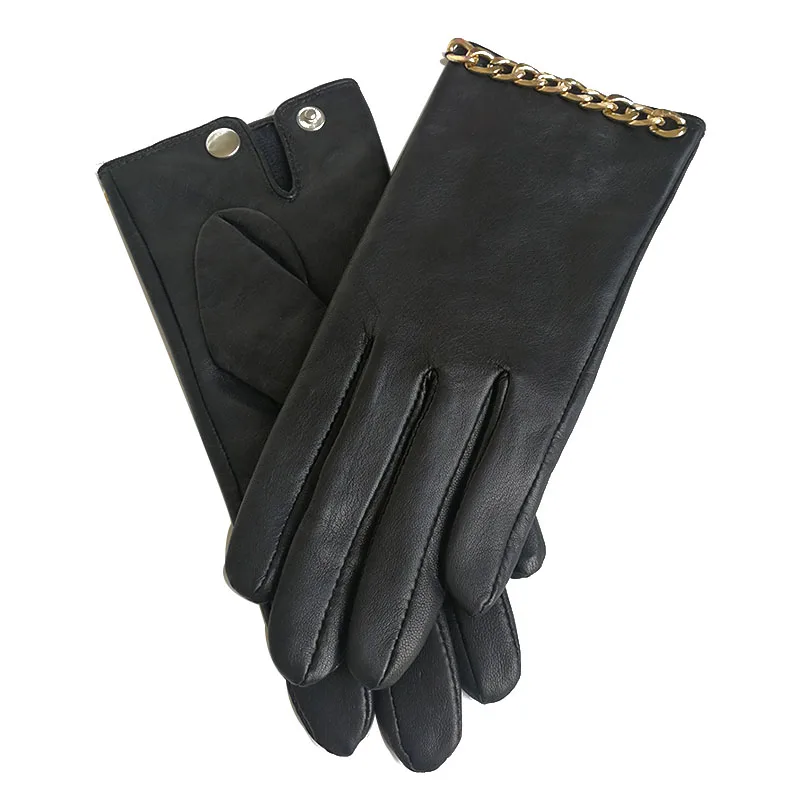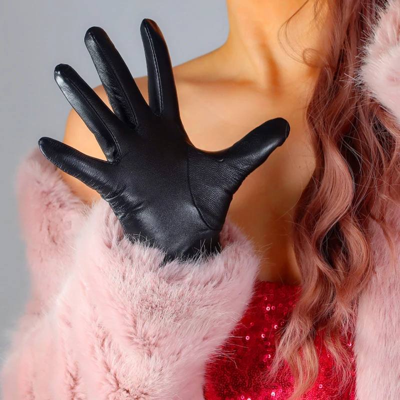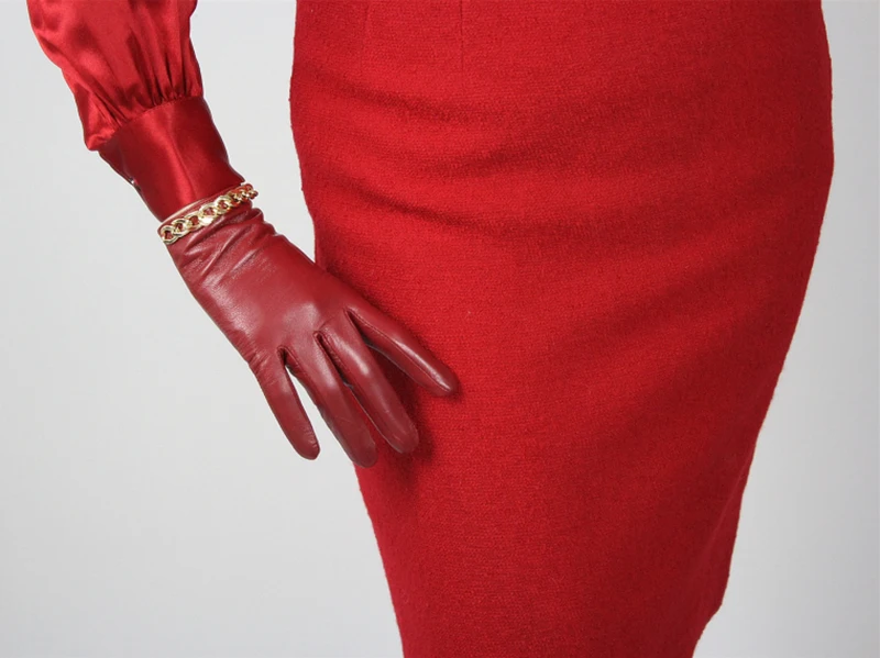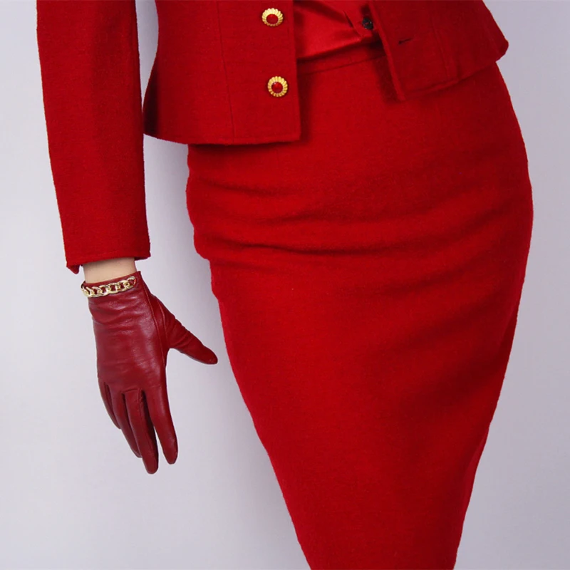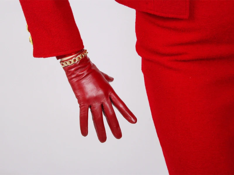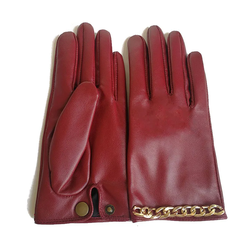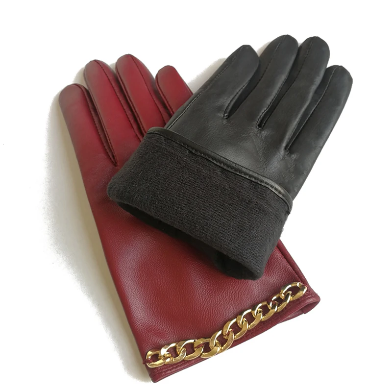 Элегантные осенне-зимние тонкие перчатки для вождения с сенсорным экраном, женские перчатки с бархатной цепочкой, короткие кожаные перчатки из овчины S2642