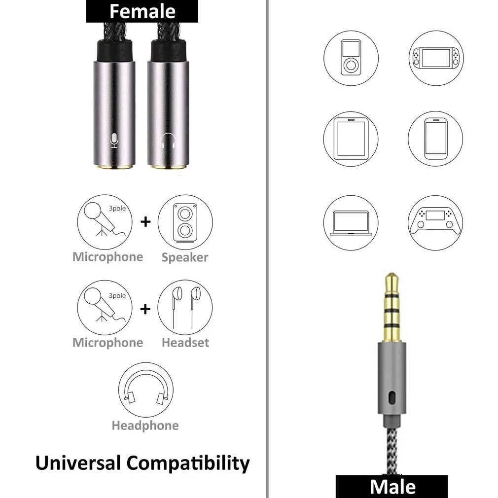 Номер моделиCable 3.5mm Audio Cable 3.5 Mm Stereo Audio Male To 2 Female Headset