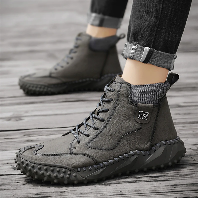 Ботинки походные мужские, из мягкой кожи, с плюшевой подкладкой, водонепроницаемые, размер 46, для зимы