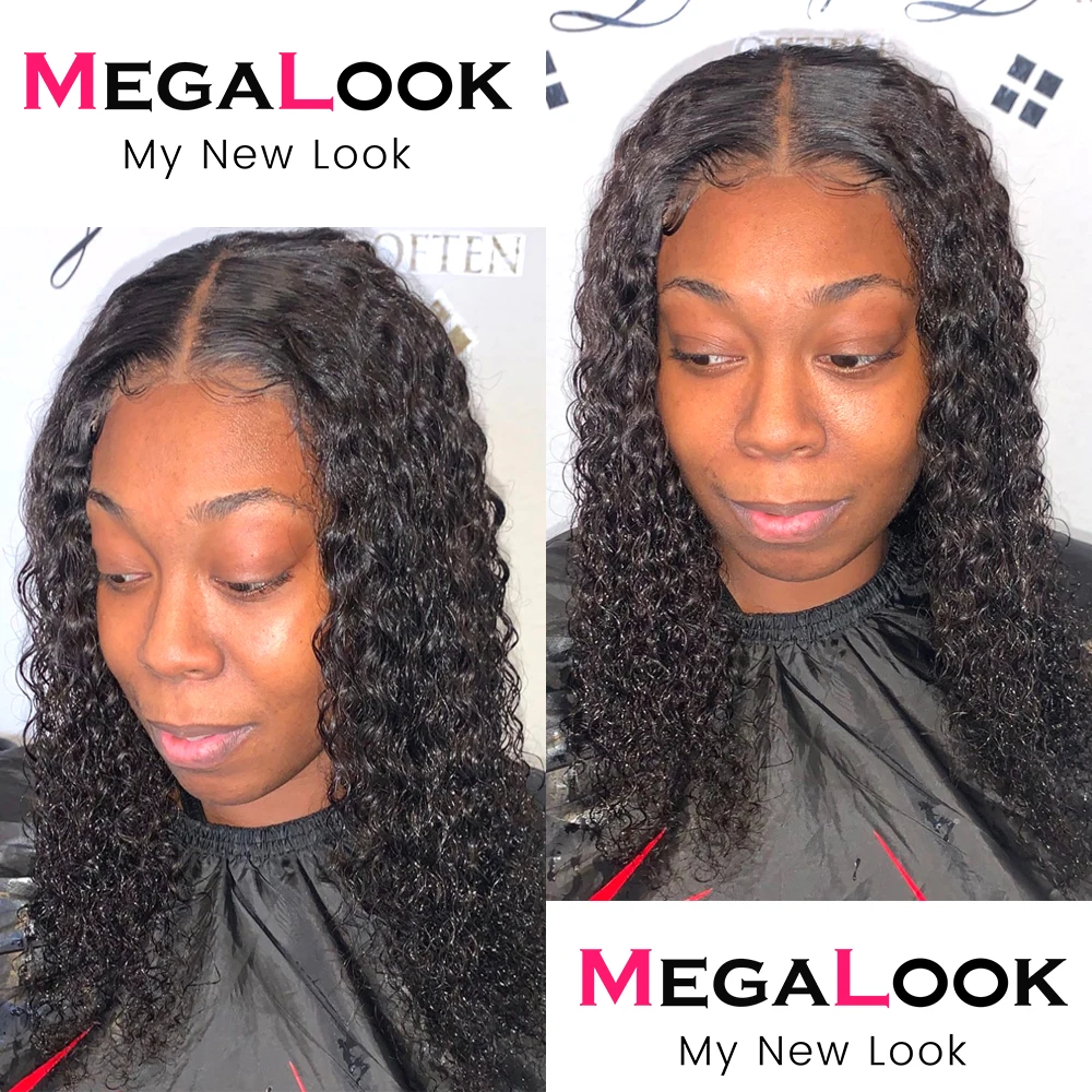 Парик из натуральных кудрявых волос Megalook, 13x4, плотность 180, ...