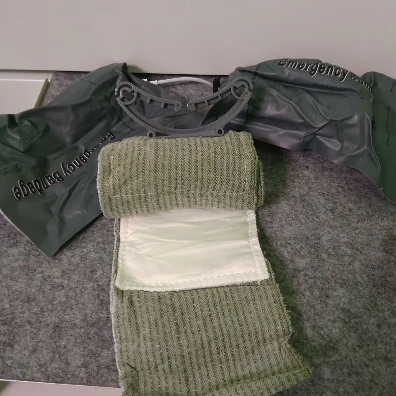 Итак. Пакет спокойно открыл одной рукой и зубами. С первого раза одной рукой наложил себе повязку на плечо. Получилось плотно. Супруга, фельдшер, сказала следующее. Бинт хорош, эластичный в длину, в ширине не тянется, это плюс. Однозначно лучше чем наши марлевые бинты. Тоже очень оценила возможность однорукого самооказания помощи. По поводу споров тут, на тему стерильности, говорит, бинт в вакууме и ЧИСТЫЙ. Пусть даже возможно не стерильный, но это уже не имеет значение, главное остановить кровотечение. Здесь и сейчас. И добраться/дождаться квалифицированной помощи, а дальше уже пусть медики над стерилизацией раны работают. В общем распакованный бинт станет тренировочным, второй, пойдет в охотничий рюкзак. Еще несколько штук закажу, чтоб положить в аптечки машин.
