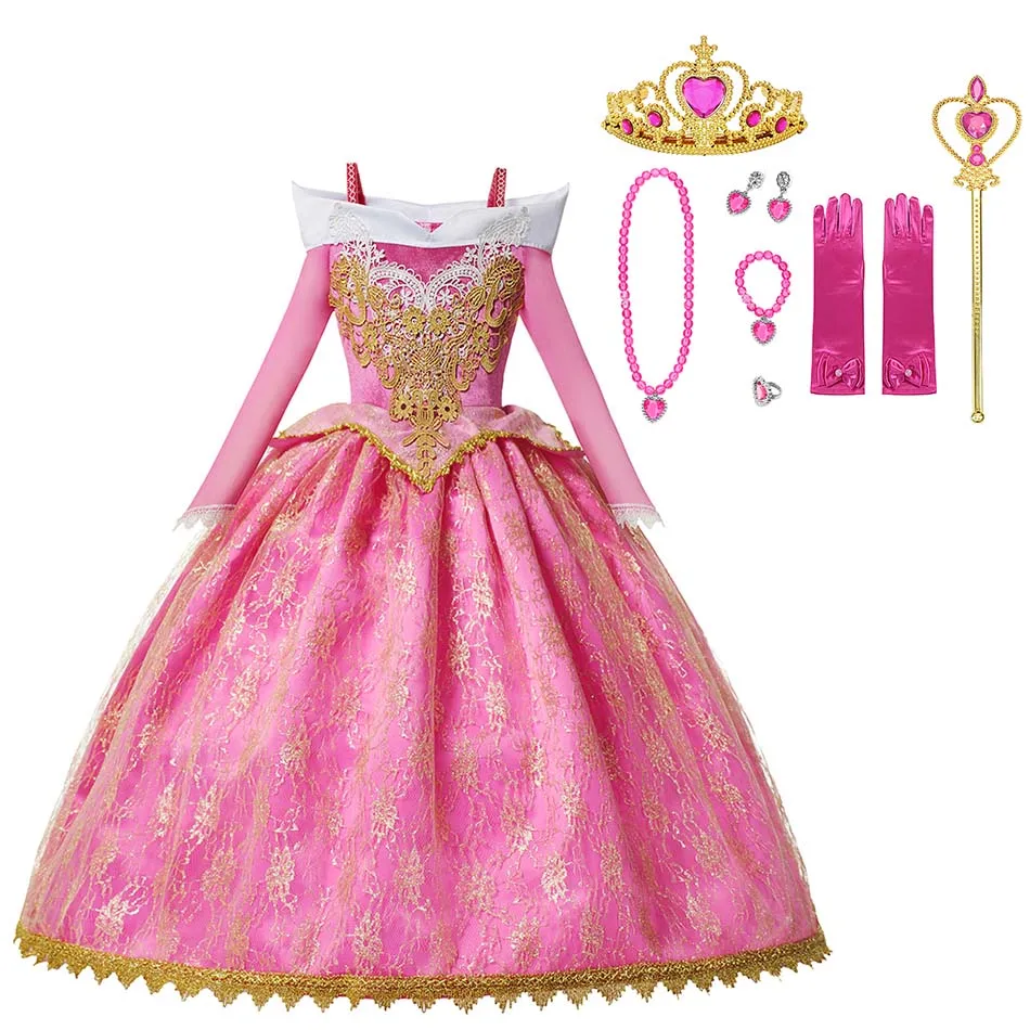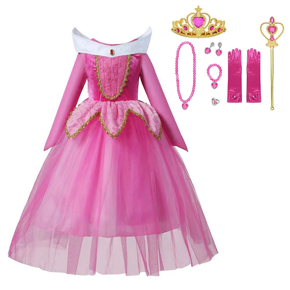 Платье принцессы «Спящая красавица»; Роскошный костюм принцессы Авроры с длинными рукавами для девочек; Рождественское бальное платье; Платье для свадебной вечеринки; Vestidos От 4 до 11 лет