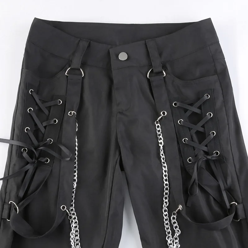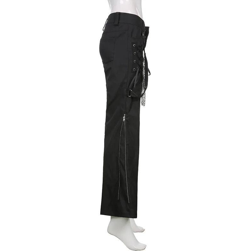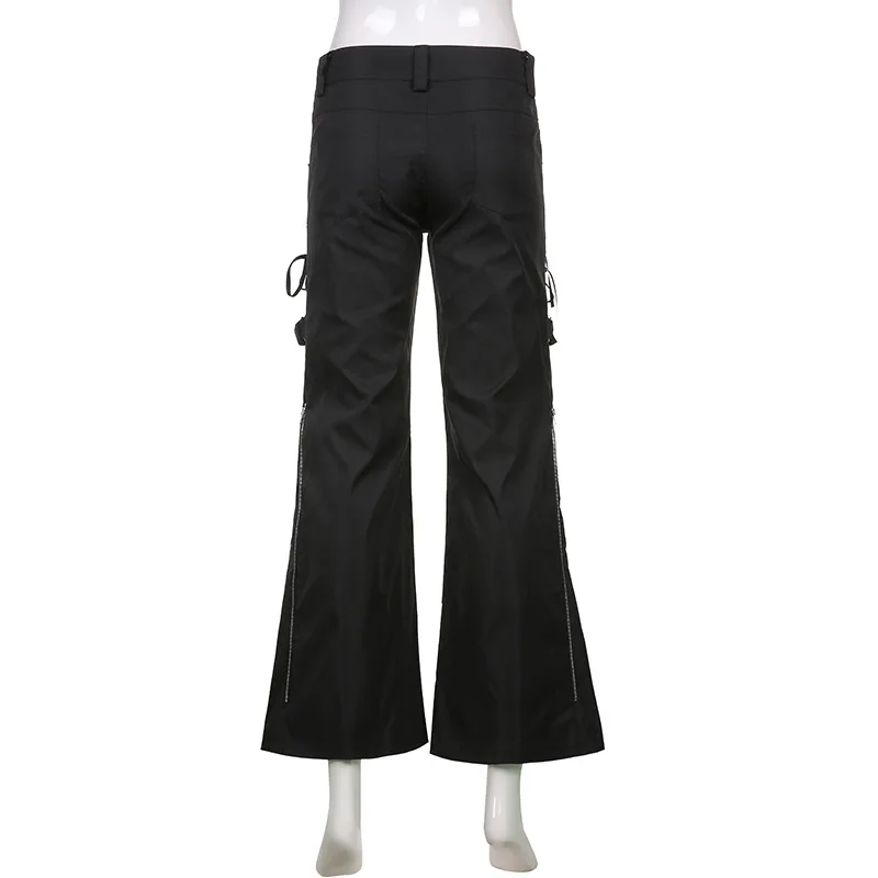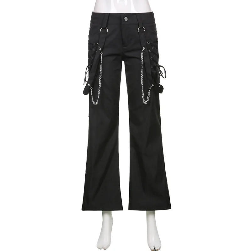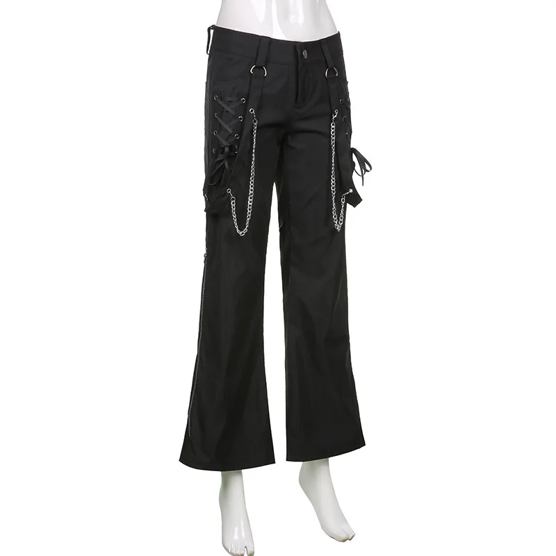 Черные женские уличные брюки-карго Goth E Girl Y2k темная академическая одежда с перекрестными завязками и низкой талией в стиле панк широкие брюки