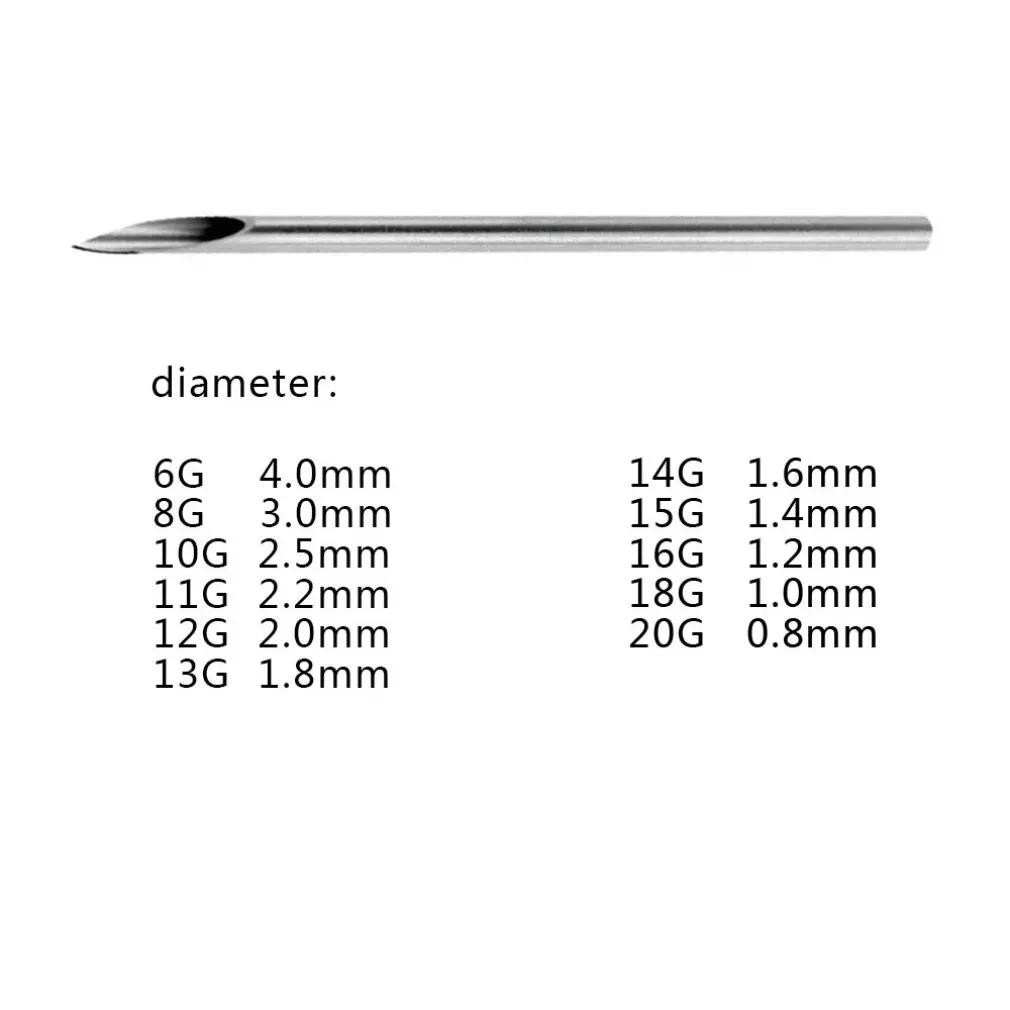 Особенности:Изготовлен из высококачественного материала, безопасен и удобен в использованииВсе иглы для пирсинга были тщательно проверены и стерилизованы E.O gasКаждый стерилизованный мешочек напечатал срок годности, и вам никогда не нужно беспокоиться, что иглы истекаютИглы для пирсинга изготовлены из нержавеющей стали с профессиональной стандартной длиной, которая подходит для всех видов пирсингаТрехскошенные медицинские иглы для пирсингаТщательно продуманный, отлично подходит для использованияСпецификация:Материал: нержавеющая стальЦвет: серебристыйТип: 6 г, 8 г, 10 г, 11 г, 12 г, 13 г, 14 г, 15 г, 16 г, 18 г, 20 гРазмер: 84*58*5 ммПосылка включает в себя:1 упаковка одноразовых стерильных игл для пирсинга