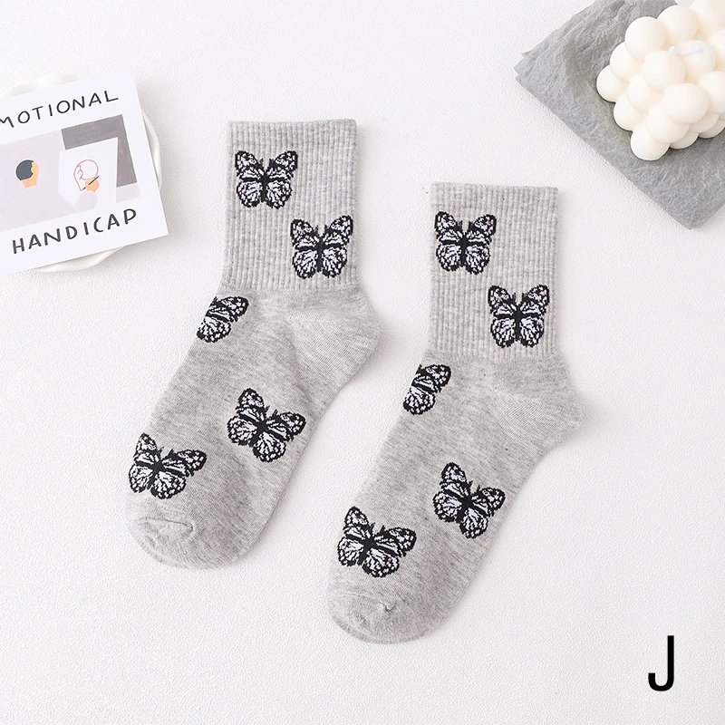 Модные носки с принтом бабочек, осенняя женская уличная одежда в стиле Харадзюку, женские хлопковые носки размера, носки в стиле хип-хоп для скейтборда, подарок для девочек